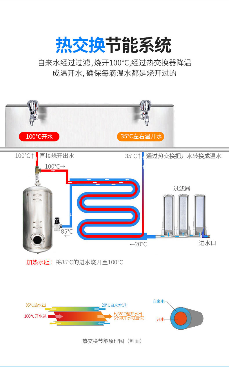 供水量:开水60L/H,温开水250L