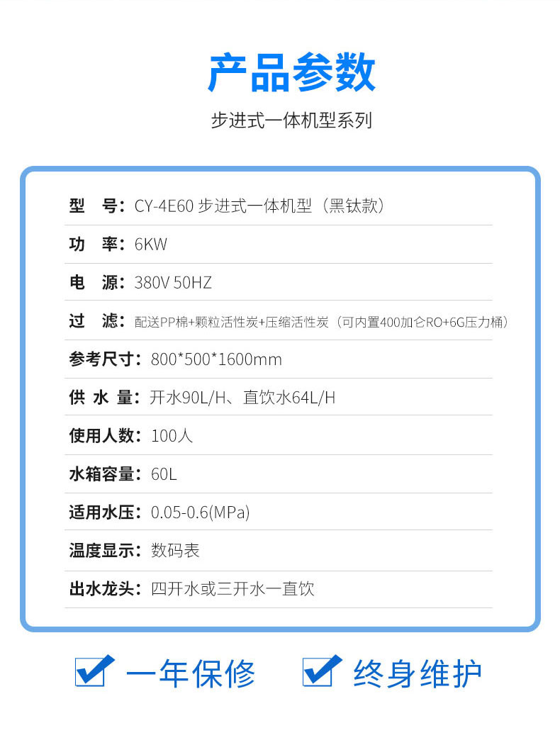供水量:开水90L/H,直饮水64L/H
