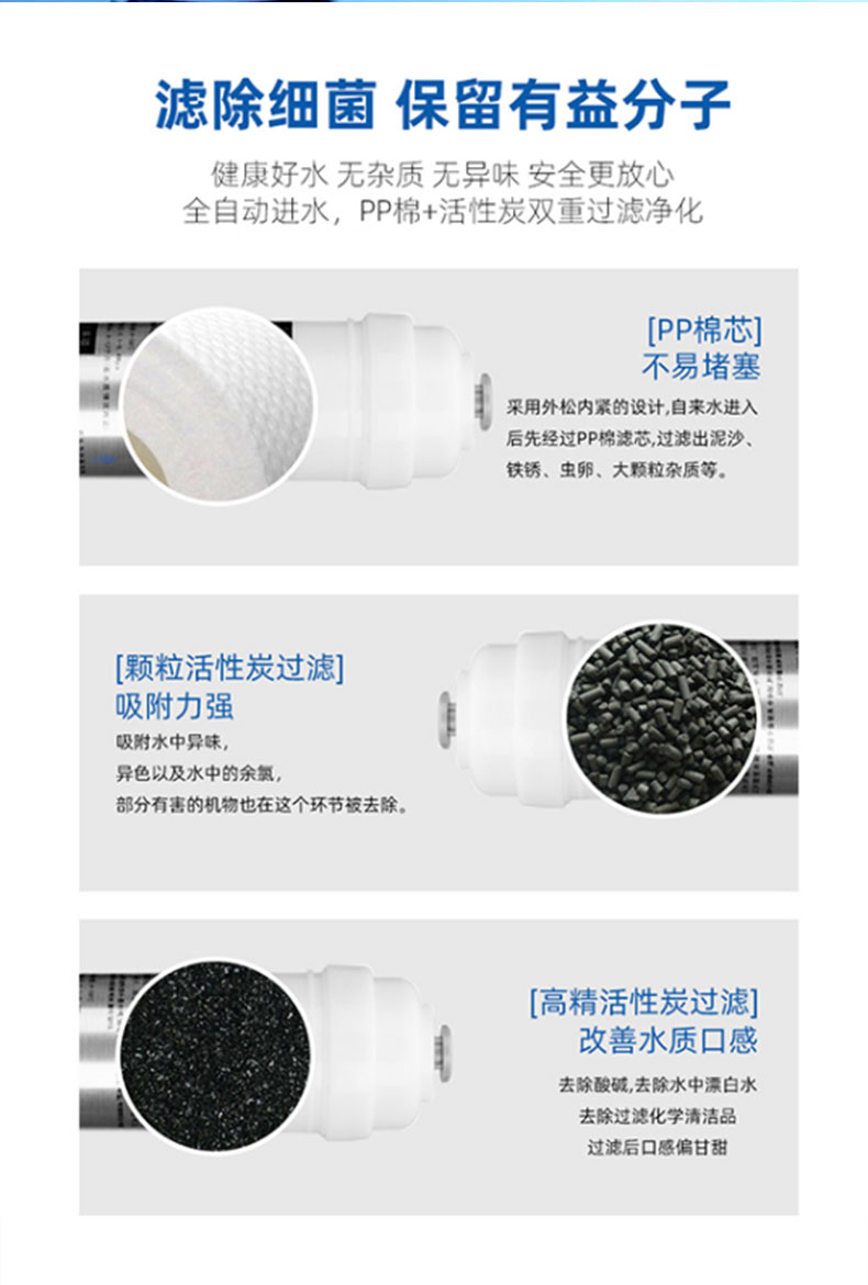 过滤:三级过滤(可内置400RO+6G压力桶)